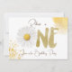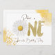 Um convite de aniversário de margarida minimalista para Menina e Menino. Simples e fofo. Nome editável, endereço.