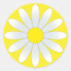 Um adesivo construído com uma margarida branca sobre um fundo amarelo. Você pode ajustar o tamanho da flor e a cor de fundo de acordo com sua preferência.