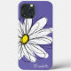 Um desenho de margarida branca com fundo de cor sólida e um lugar para adicionar um nome ou outro texto. Um design moderno, animado, desenhado à mão com cores modernas.
