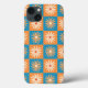 Este é um lindo padrão de flores de margarida retrô xadrez em xadrez azul e laranja. É uma capa de iPhone muito bonita para mulheres e meninas que amam designs xadrez retrô