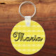 Chaveiro bonitinho em pequenos corações amarelos com o nome Maria impresso.