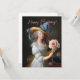 Remix de arte vítrea de Marie Antonieta segurando uma flor de anêone rosa na mão com uma fita azul