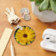 Esta bela chaveiro mostra uma fotografia detalhada de um marigold amarelo com um centro escuro. A fotografia foi tirada usando macro fotografia. Podem ver todas as pequenas gotículas de água sentadas nas pétalas desta flor requintada.