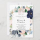 O design apresenta um elemento floral colorido impresso em tons de marinho e cor-de-água rosa pincelada, coroa náutica e estrela-do-mar. Caligrafia ou tipo escrevendo com o trabalho de arte de design. Misturar e combinar peça de coleção. Excelente para as comemorações do casamento!