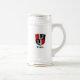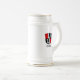 Caneca de cerveja com desenho de dois marinheiros do famoso couraçado alemão Bismarck da segunda guerra mundial com o nome do navio escrito com letras Fraktur.