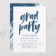 Convites de na moda e festas de formatura modernas com fonte de pincel pintada à mão e traçados de pincel de abstrato marinho. Personalize os convites para festas de formatura chic com seus detalhes personalizados de graduação para uma aparência que impressionará os convidados!