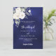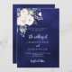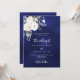Para um casamento elegante e romântico. Um fundo azul marinho, incolor, decorado com flores brancas, rosas. Personalize e adicione seus nomes e detalhes.