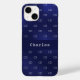 Um fundo azul marinho.A cor azul é irregular. Personalize e adicione um nome e iniciais de monograma. O nome é escrito em branco com letras modernas de blocos. As suas iniciais do monograma como um padrão de fundo.
