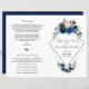 Design de cartão encantador com uma bela cor d'água, cor rosa pincelada e buquês de flores azuis marinhos, divisor floral, lindíssima estrutura de diamante, sobre um fundo azul branco/marinho. Use a ferramenta Personalizar para adicionar suas informações e fazer alterações. Para obter itens correspondentes, visite minha Coleção Floral de Blush Azul de Marinho.