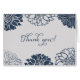 Obrigado, cartões de nota com dahlia design floral e combinação de cores azuis marinho.