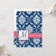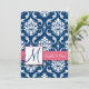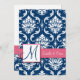 Na moda: Convites em formato retangular vertical com Cor damasco Azul e Branco Marinho, Monograma, Nomes com cores de destaque rosa. Design de Convite de Casamento por Elke Clarke ©2009. Gráficos licenciados para uso. Personalize com seu monograma, nomes e informações de convite para casamento. Além disso, escolha entre várias fontes e belos papéis para fazer seus convites de casamento FABULOSOS! Entre em contato conosco para obter alterações nas cores em luxuryweddinginvitations@gmail.com
