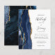 A borda esquerda deste elegante convite de casamento moderno apresenta um marinho azul de aquarela agata borda aparada com falso brilho dourado. O texto personalizável combina manuscrito, copperplate e fontes itálicas em cinzas de carvão em um fundo branco. O verso apresenta um design azul-marinho e um agate-ouro correspondentes.