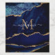 Marinho Azul Dourado Mármaco Monograma Nome Rótulo
