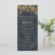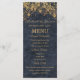 Preencha a sua mesa com este elegante menu de casamento da Coleção Rustic Glam Wedding. Projetado com luzes brilhantes de cordas douradas sobre um fundo profundo de faux-denim de marinho, este menu vertical oferece uma combinação impressionante de charme rústico e sofisticação noturna. A disposição inclui seções para pães, entrenes e lados, claramente apresentadas para serviço jante ou refeições ao estilo buffet. Perfeito para recepções de celeiro, casamentos de vinhedo ou comemorações formais de country club, este cartão coordena-se perfeitamente com seus convites, cartazes e cartões RSVP. Personalize com suas opções de refeição e detalhes de casamento para um toque personalizado e elegante que seus convidados apreciarão.