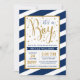 Marinho Azul Dourado Stripes Menino Chuva Convites