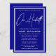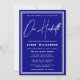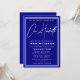 A tipografia branca escura sobre um fundo azul marinho cria um elegante e moderno convite de aniversário 100º. Uma centésima é escrita em um roteiro grande e distinto. O nome do celebrante de aniversário está escrito em negrito. Um quadro branco duplo envolve o texto. Muito fácil de personalizar.