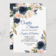 Marinho Azul e Casais Florais Blush Convite para C