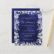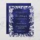 Para um casamento no inverno clássico. Um fundo azul marinho decorado com flocos de neve. A cor azul é irregular. Personalize e adicione seus nomes e detalhes. Voltar: adicione o URL do seu site ao código QR para RSVP e/ou mais detalhes. 1 folha = 1 convite impresso de borda a borda.