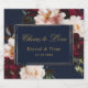 Personalize essas elegantes etiquetas de garrafas de champanhe de casamento, fácil e rapidamente. Basta clicar no botão Editar usando ferramentas de Design para editar o texto, alterar estilos de fonte e cores de fonte. Apresentando lindas e realistas flores de burgôs, pinceladas e pavorosas contra um fundo azul-marinho escuro. Itens correspondentes disponíveis no repositório. c) Paperie fina somerset