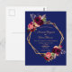 Marinho azul floral Burgundy convite para casament