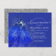 Marinho Elegante Moderno Cinza Azul Silver Glitter Sparkle Vestido Floral Gown Quinceanera 15 Aniversário Convite
