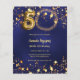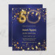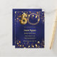 Um convite para fotos moderno e na moda para uma festa de aniversário 50ª. Um fundo azul marinho, decorado com estrelas ouros. A cor azul é irregular. Personalize e adicione sua foto e detalhes da festa. 1 folha = 1 convite impresso de borda a borda.