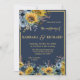 Este maravilhoso convite de casamento apresenta um fundo azul marinho com girassóis e rodeados por flores azuis mais claras e verde. Douradas letras e toques de caligrafia são um acompanhamento perfeito das belas flores. Uma escolha design para dar o tom para a sua celebração de casamento. Há variações de cartão e um envelope correspondente. Para qualquer pergunta sobre design ou personalização adicional e/ou itens correspondentes, basta enviar um e-mail para charmdesignstudio@rcn.com e teremos todo o prazer em ajudar.