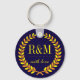 Chaveiro de monograma de vitage e laurel clássico para casamento, chá de panela, festa de formatura, aniversário, festa de noivado ou qualquer ocasião especial. Um souvenir excelente para seus convidados ou dama de honra naquele dia especial. Personalize o texto para ajustado de qualquer evento. Você também pode personalizar a cor de fundo do chaveiro clicando no botão personalizá-lo.