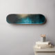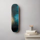 Espessuras de folhas marinhos azuis e douradas que criam uma nebulosa com um monograma vertical elegante no fundo do skate.