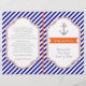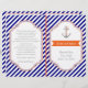 Azul marinho, listras brancas e ancorar o casamento náutico laranja náutico dobrado cerimônia de casamento e programa de festa ou recepção. Um design de padrão na moda com faixas de marinho azul, diagonal branca, âncora com coral laranja, coral e corda e cinza e texto branco em um quadro com faixa de coral. Contemporâneo, mas com um olhar vintage, de certo modo. Você pode alterar o plano de fundo e a cor do texto escolhendo no gráfico de cores do Zazzle. Este design de classe é um modelo completamente personalizável e faz parte de um casamento perfeito para um casamento náutico ou praia de verão. Você terá que dobrá-lo no centro. Escolha apenas este tipo de valor de papel à medida que ele se dobra bem.