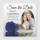 Esses cartões salve a data magnéticos são uma maneira maravilhosa de deixar seus amigos e família saberem sobre seu próximo casamento. Eles apresentam um belo design que é romântico e elegante com um rosa azul-marinho, de solteiro longo, que reflete em uma piscina de água com ondas e ondulações e sua foto em forma oval, em um fundo branco clássico. A legenda: Salvar a data com espaço para seus nomes, data e local.