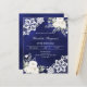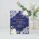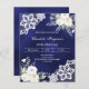 Para uma festa de inverno elegante. Um fundo azul marinho, incolor, decorado com flores, rosas e rendas brancas. Personalize e adicione seu nome e detalhes. 1 folha = 1 convite impresso de borda a borda.
