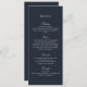 Traga um toque refinado à sua recepção com este cardápio de casamento de marinho, desenhado numa estética de dinheiro eterno velho. O fundo azul/marinho profundo com tipografia elegante o torna perfeito para o outono e casamentos no inverno, acrescentando um olhar luxuoso e sofisticado às suas mesas jantas. Uma bela maneira de guiar os convidados através dos cursos da noite em estilo.