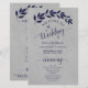 Estes programas de casamento são elegantes e saborosos, enquanto ainda são favoráveis ao orçamento. A mão pintada com design de aquarela apresenta um sulco de folhas azuis marinhos profundas em um fundo de cinza marmoreado. A tipografia apresenta uma caligrafia antiga em script, e há espaço para detalhes sobre a cerimônia, a festa noiva e um obrigado curto para você.