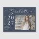 Sim! Seu estudante de ensino médio, segundo grau, faculdade/universidade, escola de tecnologia ou formando fez isso e está se formando! Celebre um dos momentos de precioso de sua vida e envie esse cartão magnético de anúncio de graduação. O ímã apresenta um estilo minimalista moderno simples e elegante com um belo roteiro de caligrafia em um fundo azul marinho e a foto do formando. Basta personalizar e substituir o texto e as fotos na caixa de personalização. Note: As frases elegantes do script de caligrafia com a expressão "formando" junto com as linhas e outros trabalhos de arte gráficos e elementos não podem ser editados, apagados ou movidos. Eles estão consertados.