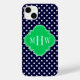 Padrão Pontilhado de Polka marinho Azul e Branco, Emerald Green Quatrefoil 3 Monograma inicial Personalize isso com seu monograma, nome ou outro texto inicial. Você também pode alterar a fonte, ajustar o tamanho e a cor da fonte, mover o texto para ajustar o espaçamento da letra do monograma, etc. Observe que este é um design gráfico digitalmente criado que é transferido para o produto subjacente. A design não contém nem fita nem etiquetas, metais, gravuras, etc. 2013 ©FantabulousPatterns Todos os direitos reservados