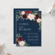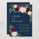 Boho Burgundy e Blush Floral Marinho Invitation. Esse convite se caracteriza por boho burgundy e rosas e flores esmagados com duas fontes modernas de alta classe que moldam as tendências dos eventos festivos atuais e futuros.