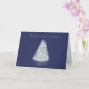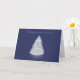 Fundo azul marinho com branco cintilante, árvore de Natal nevada. Desejando-lhe paz e amor