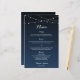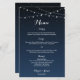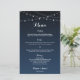 Marinho Celestial Blue Starry Night Wedding Menu. Perfeito para casamento no quintal externo e casamento de tema celeste Para uma aparência coesa, CONSULTE ITENS CORRESPONDENTES: https://www.zazzle.com/collections/starry_night_wedding_collections-119114444457820023 PERSONALIZAR ESTE ITEM (1) Para mais personalização, clique no link "personalizar mais" e use nossa ferramenta de design para modificar este modelo. Você também pode mudar a cor de fundo! (2) Contacte-me se desejar que haja itens correspondentes que não estejam disponíveis no meu compro.