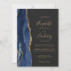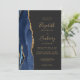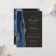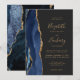 A borda esquerda deste elegante convite de casamento moderno apresenta um marinho azul de aquarela agata borda aparada com falso brilho dourado. O texto personalizável combina manuscritos dourados, copperplate e fontes itálicas em um fundo de cinza de carvão escuro. O verso apresenta um design azul-marinho e um agate-ouro correspondentes.