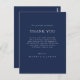 Este clássico cartão de obrigado azul marinho prateado que você recebe é excelente para um simples casamento romântico e elegante. A paleta de cor azul-marinho escura e a tipografia mínima de vintage lhe dão um toque formal clássico. O design é flexível, perfeito para uma noite contemporânea básica, primavera, outono, verão ou casamento no inverno. Mantenha-o como está ou escolha personalizá-lo com trabalho de arte ou gráficos de sua escolha.
