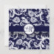 Monograma legado Vintage Damask Swirls Marinho Casamento tema damasco Azul Convite Monograma mais pequeno no verso
