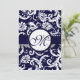 Marinho Damask Swirls Convite Para Casamento