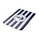 O tapete de banho náutico é uma decoração do banheiro com tema de praia que é decorada com uma âncora azul de navio marinho, nome da família, ano de teste, listras brancas e marinhos e um círculo de corda. É fácil personalizar este tapete de banho com seu nome, iniciais, nome da família ou outro texto. A decoração do banheiro costeiro com âncora é perfeita para decoração de uma casa de praia.