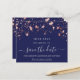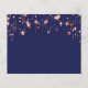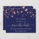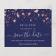 Uma tendência Salve a data para uma festa de aniversário 40th (ou qualquer idade). Um fundo azul marinho com estrelas rosa douradas. O texto: Salvar a Data é gravado com um script de estilo com letra de tendência grande. Letras coloridas de cinza clara.