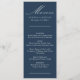 Cartão personalizado de cardápio de casamento. Simples design clássico e elegante em azul marinho para coordenar com as cores do seu casamento (procure na minha loja cores do alternativo ou clique em "personalizar mais" e mude a cor do plano de fundo para se adequar). O modelo está pronto para você adicionar os nomes da noiva e noiva, a data do casamento e o seu menu.
