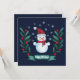 Cartão de natal azul marinho personalizado com boneco de neve a aquarela, flocos de neve e flores de inverno. Há também uma área onde você pode escrever qualquer coisa que quiser - nome, desejos de natal ou outra coisa, muito fácil de editar e você pode escolher entre várias fontes, se quiser.