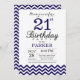 aniversário de 21 anos com Marinho Blue Chevron.Preto & Branco. Aniversário Adulto. O Dia do Homem ou da Mulher Convidam.