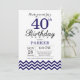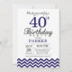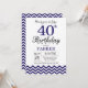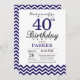 Convite para aniversário de 40 anos com Marinho Blue Chevron. Preto e Branco. Aniversário Adulto. Convidam o Homem ou a Mulher Bday. Para mais personalização, clique no botão "Personalizar" e use nossa ferramenta de design para modificar este modelo.