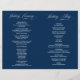 Este é o cartão de programa da cerimônia de casamento Feliz para Todos, no clássico Marinho de elegância Blue color temed. Ele foi projetado com sotaque de rolagem que pode ser personalizado com texto personalizado/ personalizado para seu partido noiva, detalhes da cerimônia, notas memoriais e mensagem de obrigado. ** Nota: esses programas de papel de peso de texto chegam em formato plano e exigem a dobragem para montagem.